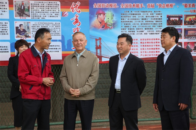 中铁一局集团有限公司总经理李晓峰、党委副书记王新年参观展览室